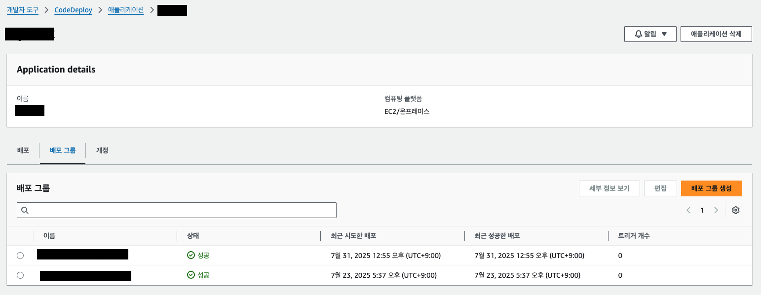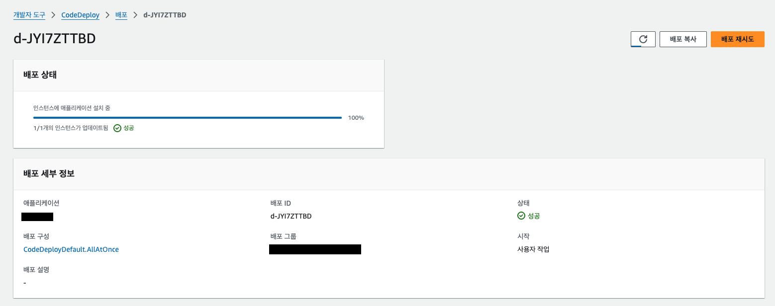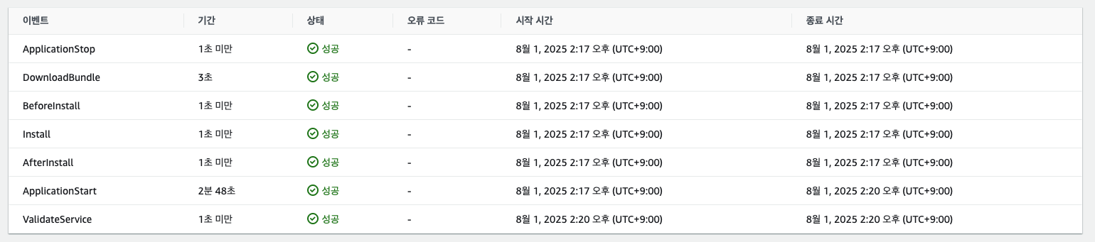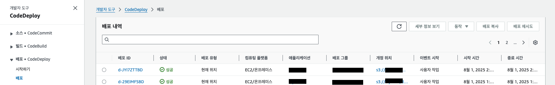 그런 다음 CodeDeploy에 배포를 확인해 보면 하나가 떠있을 거예요!