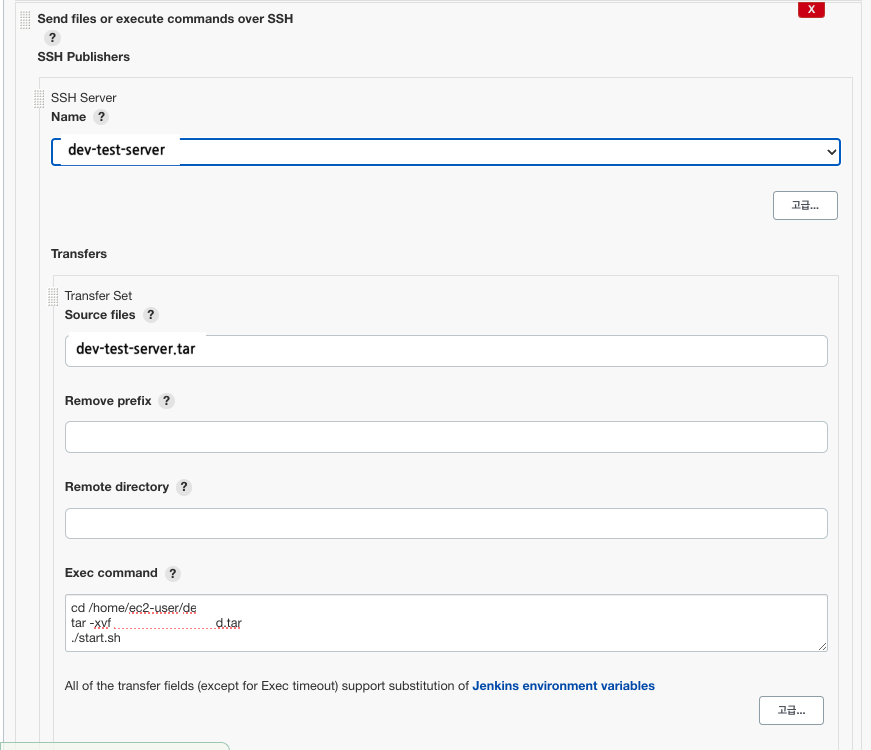 destination: /home/ec2-user/{프로젝트 폴더 이름}