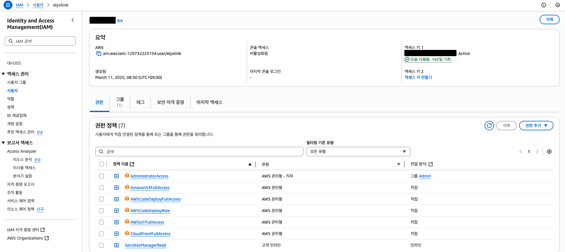 AWS IAM 들어가서 내가 사용할 사용자를 선택합니다.
