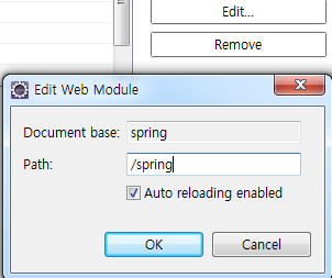 edit을 눌러 **프로젝트명(spring)**으로 바꾼 후 서버 재실행하기!
