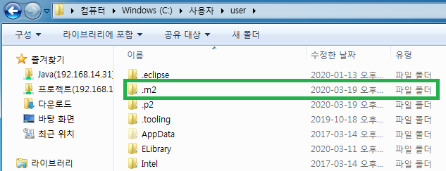 만약 실행이 되지 않을 경우 이클립스를 종료하고 .m2 폴더를 삭제 후 다시 이클립스를 실행하면 다시 maven이 라이브러리를 빌드할 것임