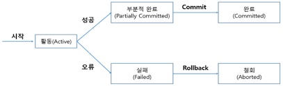 Active | 초기 상태, 트랜잭션 실행 시작 또는 실행 중인 상태 | Partially Committed, Failed |