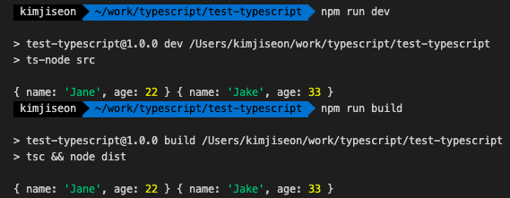 - 개발할 때는 ts-node를 사용하지만, 개발 완료되면 타입스크립트를 자바스크립트로 변환해서 node로 실행해야 되기 때문에 수정해줍니다.