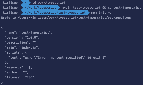 - 새로운 프로젝트 디렉토리를 생성 후 npm init 명령어를 통해 package.json 파일을 만든다.